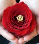 The 19th century French rose, General Jacqueminot, which is a deep red, was chosen as the flower of Alpha Omicron Pi because its color is the symbol of central and most essential virtue of the Fraternity. The Jacqueminot Rose is not available at most florists, so any deep rose which is available may be used.