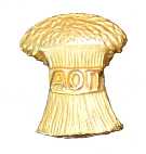 The binding together of wheat into a sheaf in the new member pin represents individuals bound by the common bond of Alpha Omicron Pi.